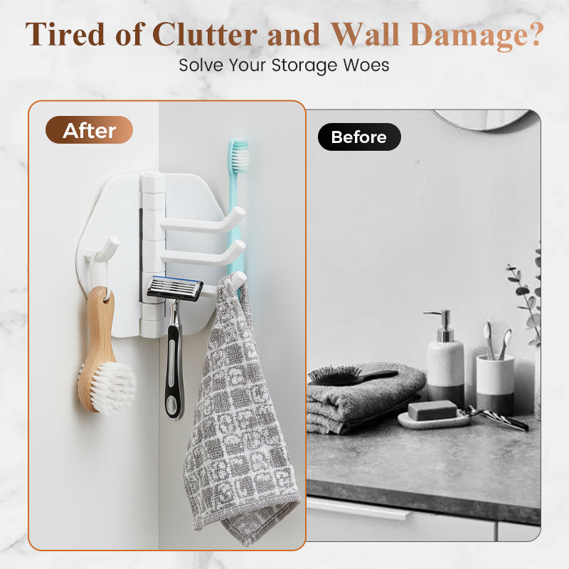 THREE ROTATING HOOKS: Features three independent arms that can be rotated to adjust their direction. This provides flexible hanging options and ensures you can easily access your items without them getting tangled.