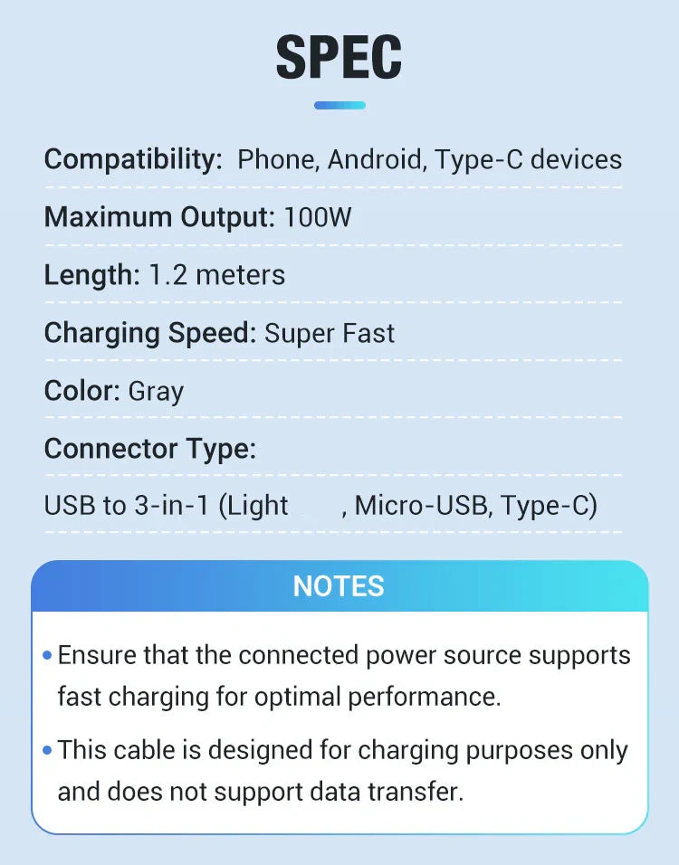 đ„Transparent Luminous 3-in-1 Super Fast Charging Cableđ„