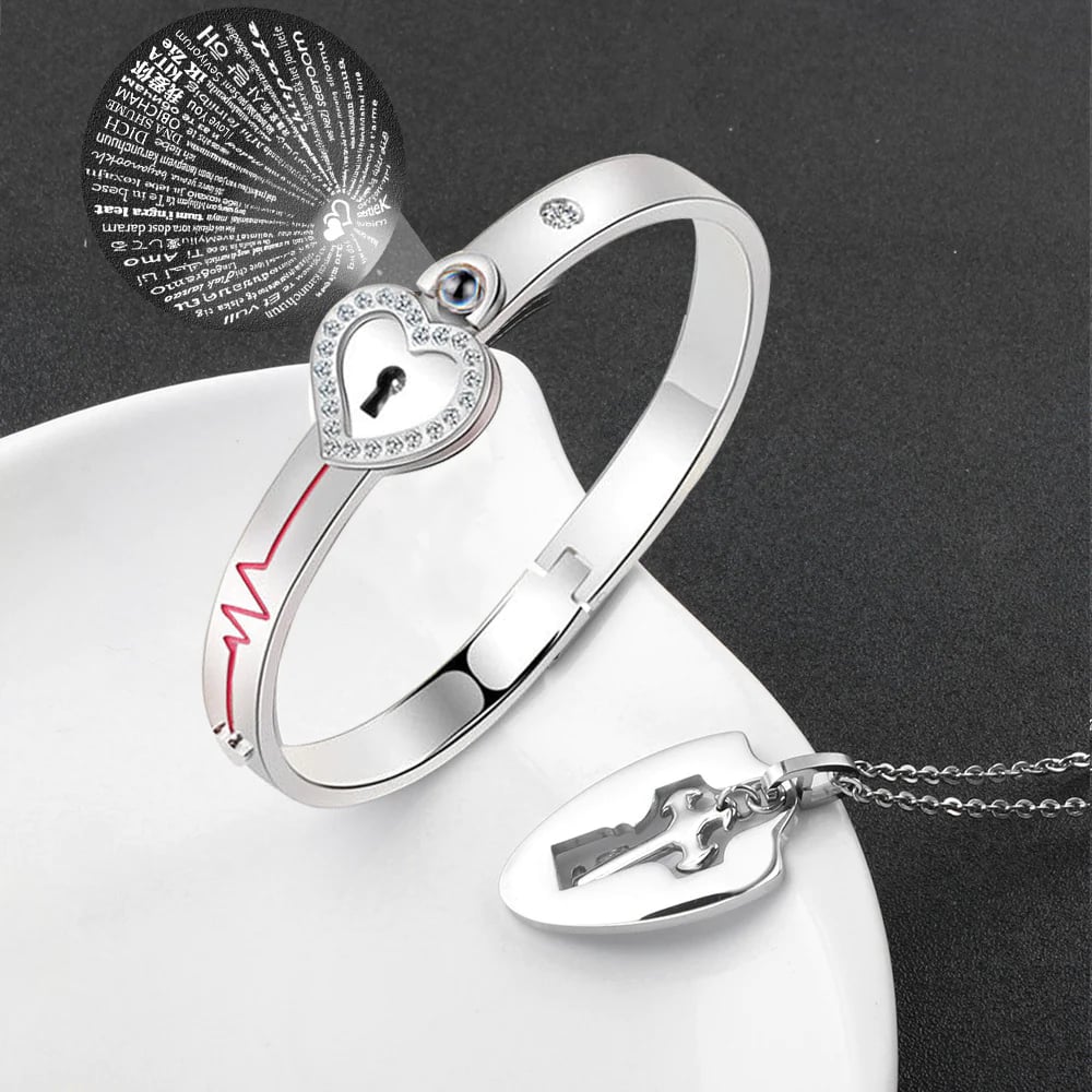 Surprise the special one in your life with our Lock Bracelet & Key Necklace Set. Our bracelet and necklace set is the perfect symbol of love and togetherness. You'll both be reminded of your everlasting bond, even if you're miles apart.